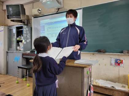 本日は、2学期の終業式。各クラス、先生から通知表を手渡ししてもらいました。