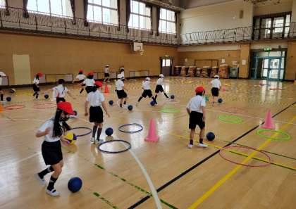 メインの活動は、ボールけりとなっています。2学期は、手を使った操作なので勝手がよかったですが、足での操作となるとなかなかうまくいきません。