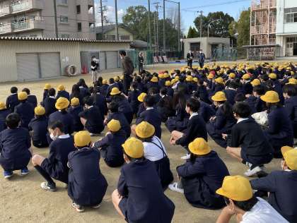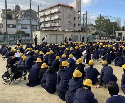 地震・津波を想定した避難訓練を行いました。速やかに避難し、4分と掛からず避難を完了することができました。