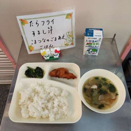 たらフライ、すまし汁、こまつなのごまあえ