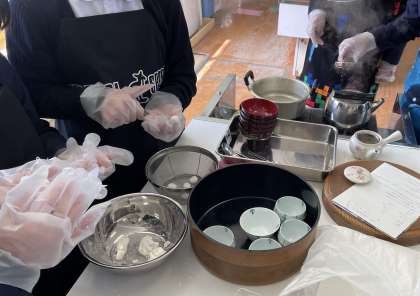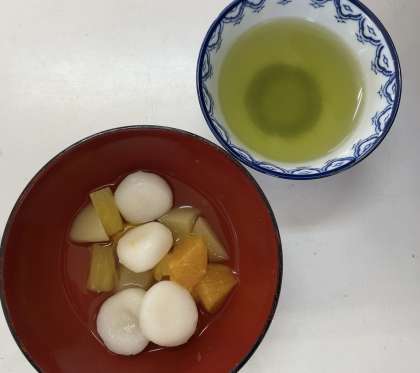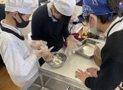 調理実習を行い、フルーツ白玉をグループ毎で作りました。