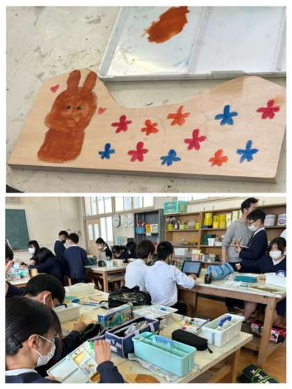 6年生の図画工作では、テープカッターを作っています。