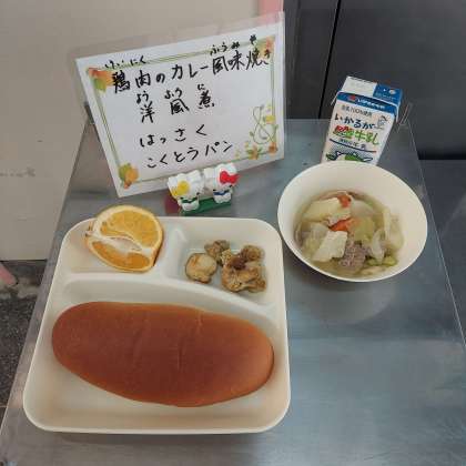 鶏肉のカレー風味焼き、洋風煮、はっさく