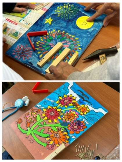 3年生の図画工作では、くぎうちビー玉ゲームを作っています。