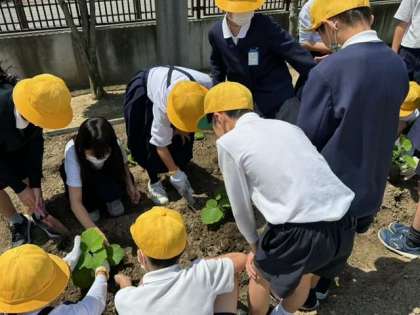 カボチャで植物が成長するときの条件を変えて観察しています。