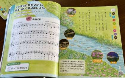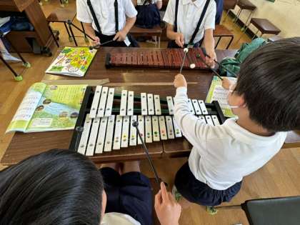 3年の音楽では、「春の小川」について、木琴や鉄琴を演奏に取り入れています。