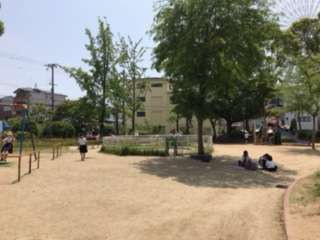 お弁当とおやつを食べ終わり、天保山公園で遊んでいます。