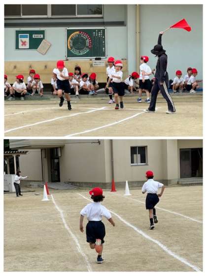 全学年、50m走やソフトボール投げなどの種目にエントリーし、記録をとっています。