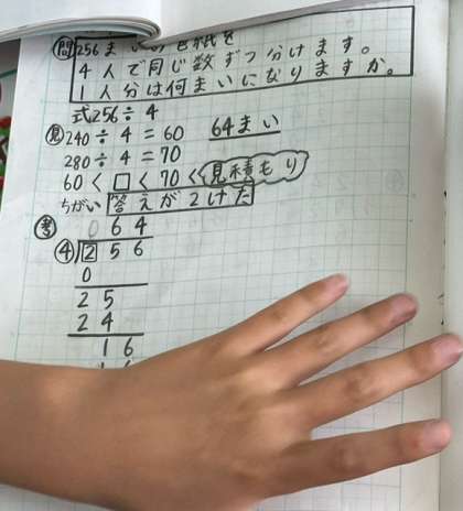 4年生の算数では、百の位に商が立たないわり算の筆算について考えています。