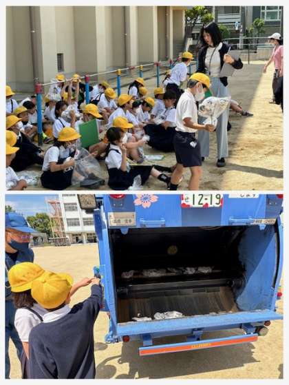 どのような仕組みでゴミが圧縮されていくのか、近くで見たり操作したりして体験しました。