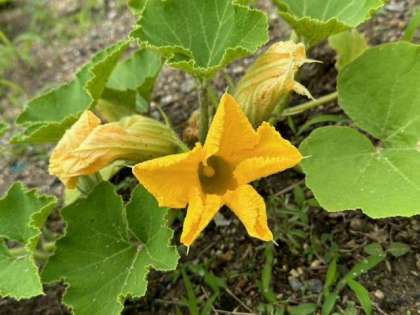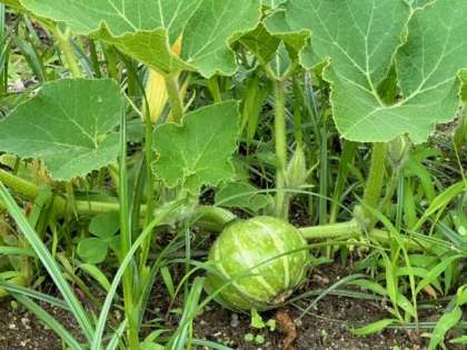 学習園では、カボチャが受粉し、小さな実をつけているようすが観られるようになりました。