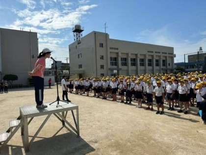 朝礼は短時間で終わりましたが、その間もじりじりと照り付ける日差しに、子どもたちの集中力も持たないようでした。