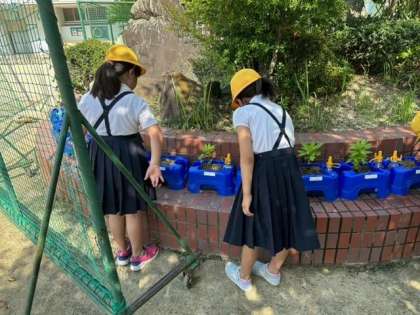 朝礼後は、1年生から3年生までの鉢に水やりをしていました。