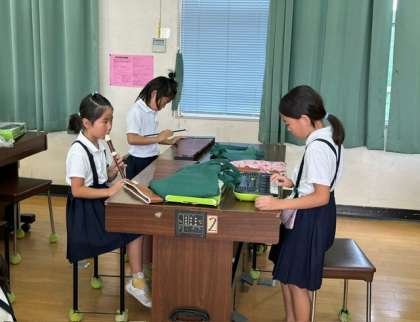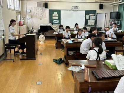 グループでリコーダー・木きん・キーボードに分かれて合奏を披露しています。