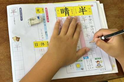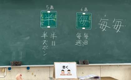 新出漢字について、使い方を知ってから筆順どおりに書いています。
