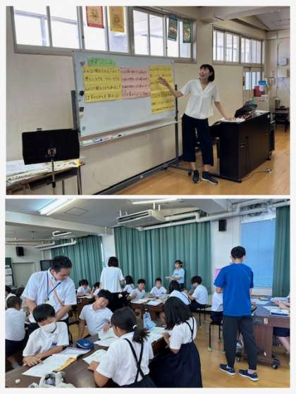 ワークシートを使って旋律の動きやリズム、強弱、音色などから曲想の違いを見つけ、グループや全体で話し合いながら確認していました。