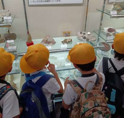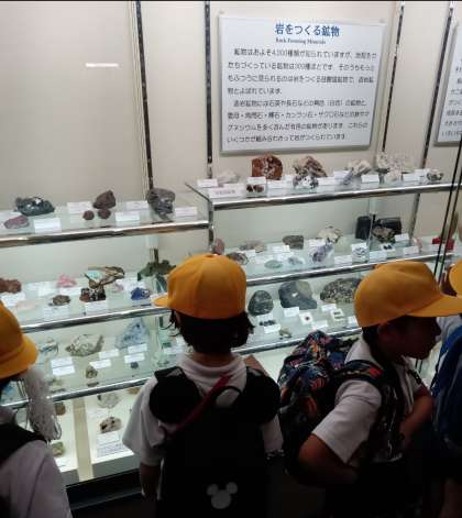 岩から取れる鉱石をみています。「これ、ほしいー!!」と目がキラキラしています。