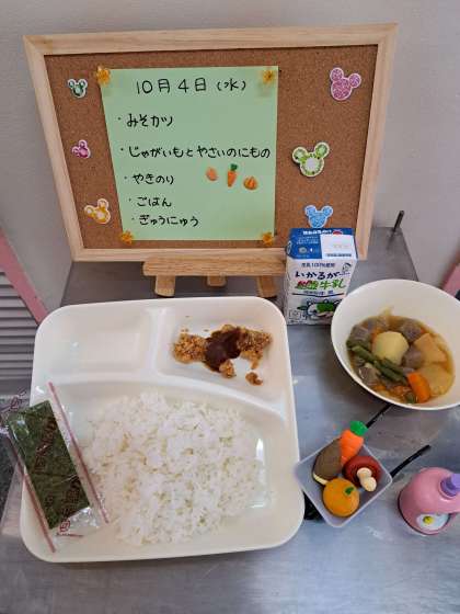 みそカツ、じゃがいもと野菜の煮もの、焼きのり