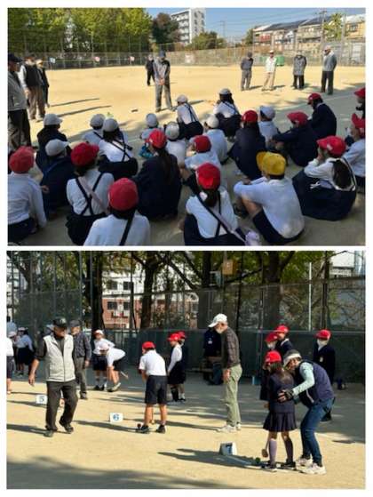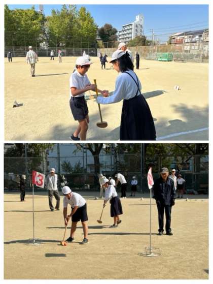 今川地域の皆さんと子どもたちのふれ合い活動として、グランドゴルフ体験を行いました。
