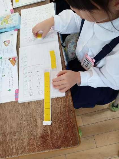 算数科では、くり下がりのあるひき算を学習しています。