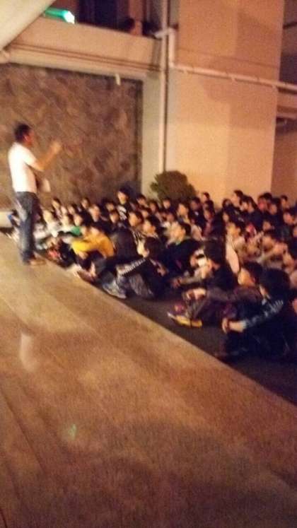 少し早いですが、夜のつどいが始まりました。実行委員による1日の感想を聞いたり、松村先生から明日につながる大切な話を聞いたりしました。