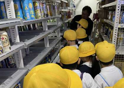 ファミリーマートでは、ドリンクコーナーの裏側を見せていただいたり、店内を見学させてもらったりしました。普段見れない場所を見学し、子どもたちも興味津々でした。