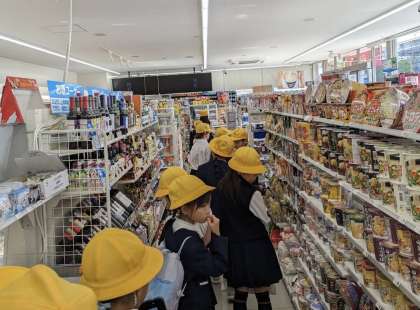 ファミリーマート、郵便局、業務スーパーの三ヶ所へ町探検へ行きました。