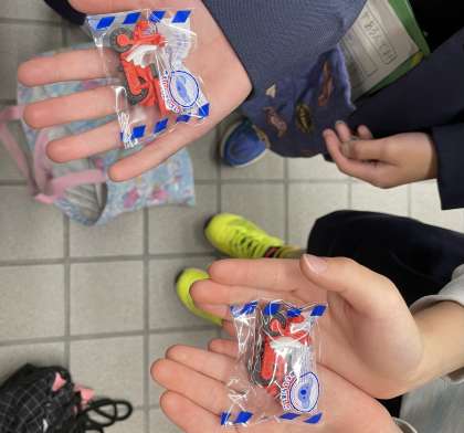 また、色々な色のポストを教えてもらい、帰りには郵便局にちなんだ消しゴムをプレゼントしてくださいました。