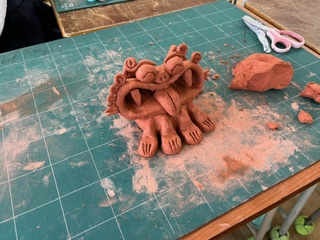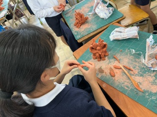 12月は二学期最後の大きなイベントである作品展があります。前に紹介させていただいた通りアボリジナルアートは完成し、次はシーサーだからに入っています。シーサー作りは時間との勝負なので半日がかりで一気に作りました。なかなか大変でしたがみんなかわいいシーサーを作っていました!作品展で乞うご期待!