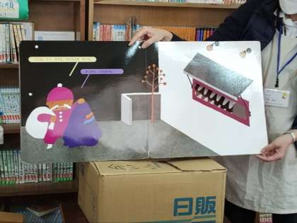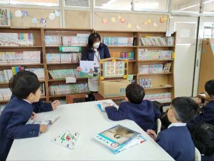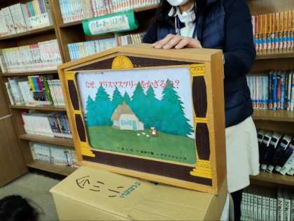 本日の図書の時間は、司書の先生に、クリスマスに関する紙芝居や絵本を読み聞かせして頂きました。
