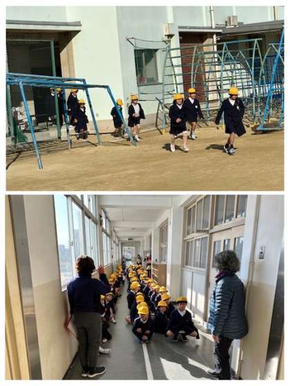 講話の後、津波訓練を行い、2階以上の場所に避難することができました。