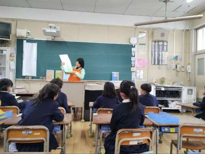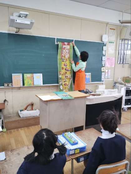 朝の読書の時間に、保護者のボランティアの方に、絵本の読み聞かせをしていただきました。