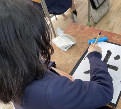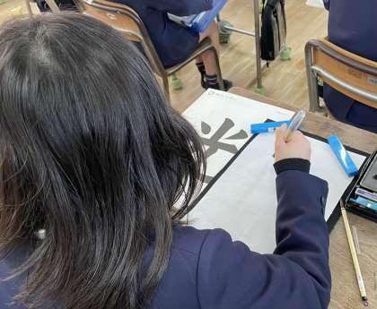 これまで筆で書いてきた「一」や「下」、「人」などのとめ、はね、はらいを意識して丁寧に書きあげました。