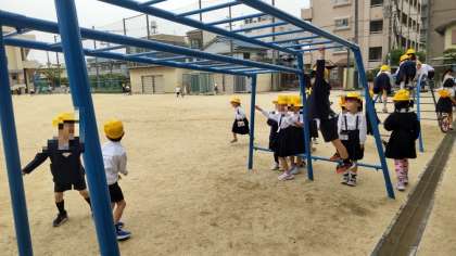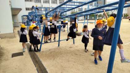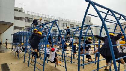 2時間目が終わった後の15分休みの様子です。ジャングルジムやうんてい、ろくぼく付近の様子です。その多くは女の子です。手の皮がむける子が何人か出てくるでしょうね。