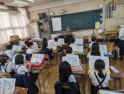 音楽では、鍵盤ハーモニカを使って演奏したり歌ったりしました。