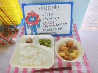 今日は、給食室でさやから1つずつ取り出したえんどうを使用しました。大阪府羽曳野市碓井(うすい)地区では、100年以上前から「うすいえんどう」が作られているそうです。