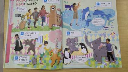 1年生の教室を除くと、「ピンクパンサー」の曲に合わせて、体を動かして楽しんでいました。最初は、抜き足、差し足、そしてテンポアップすると、ジャンプしたり体を回したりと…。楽しそうにリズムに乗っていました。