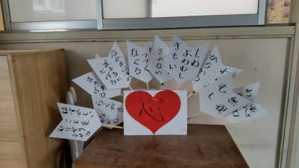 本校でも、いじめられる心を、「暴力」や「からかい」、「いやがらせ」、「無視」などを矢に見立て、グサグサと心に突き刺さってくる様子を表しながら「いじめ」を考えていきました。また、学級でもそれぞれ担任の先生から、発達年齢にあった授業や講話を聴きました。