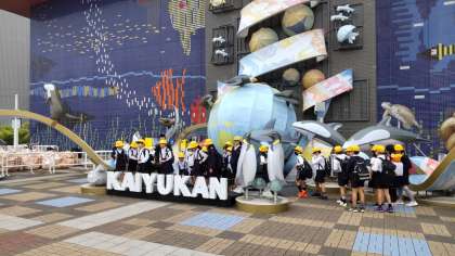 海遊館に着きました。風がつよいです。かなりすいています。欠席なく、全員参加です。