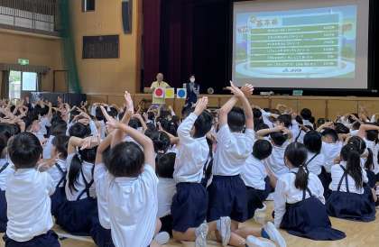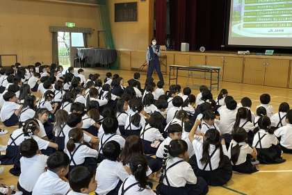 警察署の方にお越しいただき、2・3年生と一緒に交通安全について学びました。
