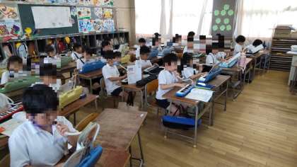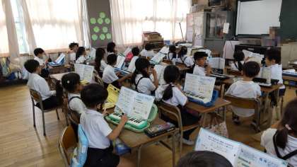 2年生は、音楽で鍵盤ハーモニカを使って、「かっこう」の合奏をしていました。正しい指使いができている子もいれば、疑わしき子もいました。途中で指が足りなくなって、困っている児童もいました。がんばって正しい指使いを覚えようね。