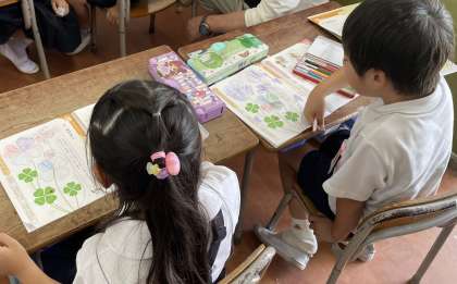 最後は「友だちっていいな」と感じた思い出の数だけクローバーの葉を描いて完成させる活動では、枠の外まで友だちを思って葉を描く姿が見られました。