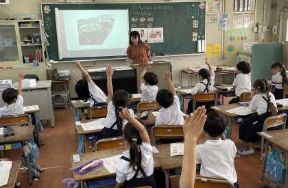 給食は誰が作り、誰が考えているのか、どのような機械や道具で給食は作られているのかクイズや動画で分かりやすく教えてくれました。