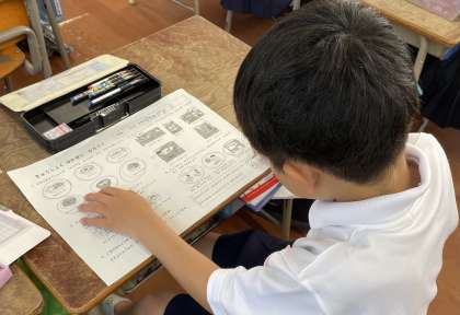 栄養教諭の先生に給食に関する授業をしていただきました。