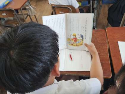 学習の目標は「物語を短くまとめて、紹介しよう」です。どのような登場人物が出てくるのかを読み取り、あらすじを紹介するカードを作る予定です。