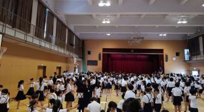 記念すべきゲーム集会でした。「ジャンボじゃんけん」と班のメンバーと声を合わせてじゃんけんをしました。王様を決めて、王様に勝ったらハイタッチです。とても楽しく仲良く活動できました!!