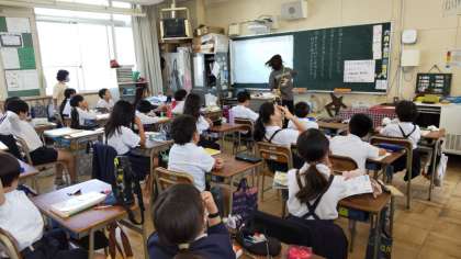 5年生は国語科で、「漢字の仲間分け」を学習しています。詳しくは、象形文字、会意文字、指事文字、形成文字、転注文字、仮借文字の6種類になります。子どもたちには、ものの形を表した文字(門)とか、意味から作られた文字(上・下など)と教えています。