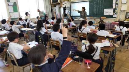 もうすぐA4の大きさの「ミニホワイトボード」を全児童に配りますので、「ホワイトボード」に自分の考えを書いて、頭の上にあげる答え方も授業の中で使っていきます。
