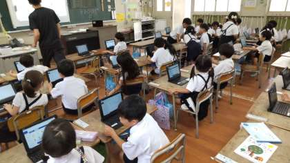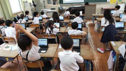 1年生は、初めて学級でタブレットを使いました。カーソルの動かし方、クリックの仕方、などの基礎の基礎の経験です。次は、写真の撮り方の学習でしょう。きっと、自分のアサガオの花やつぼみ、種などの記録写真を撮りためて、アサガオの成長を振り返るのでしょうね。キーボードを使っての入力はローマ字を習ってからでしょうね。でも「心の天気」の入力はすぐにできると思います。