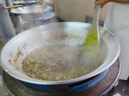 給食では、牛肉とピーマン、たけのこをいため、さとうやしょうゆ、オイスターソースなどで味付けしました。
